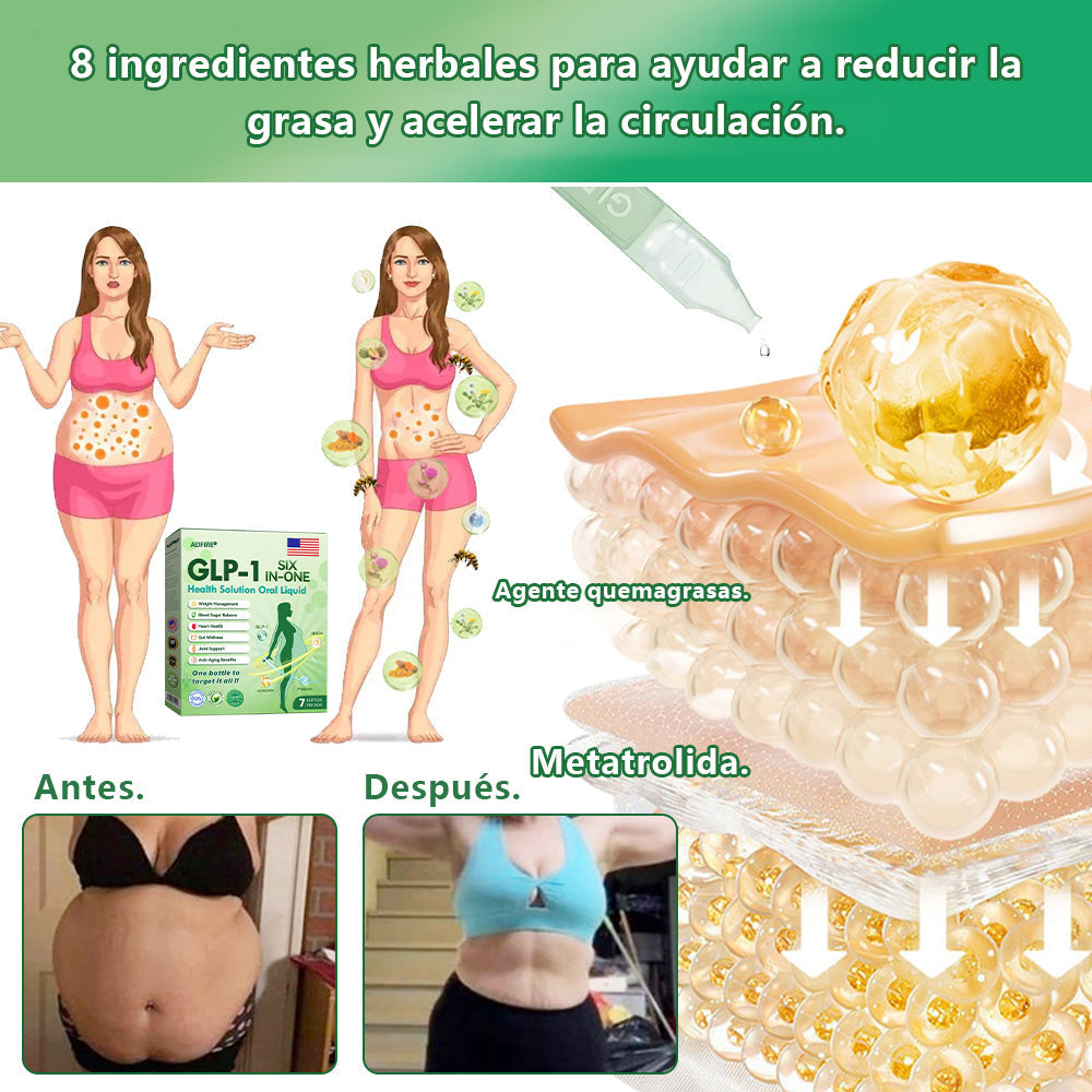 El extracto de equinรกceaย refuerza la funciรณn inmunitaria estimulando la producciรณn de glรณbulos blancos, lo que ayuda al cuerpo a combatir infecciones.ย Los probiรณticosย mantienen un microbioma intestinal equilibrado, mejoran la digestiรณn y favorecen la salud inmunitaria, aliviando problemas como la hinchazรณn, el estreรฑimiento y el sรญndrome del intestino irritable (SII).ย El vinagre de sidra de manzanaย mejora la motilidad intestinal y favorece la salud de las bacterias intestinales, aliviando las molestias digestivas y promoviendo el bienestar digestivo general. Al combinarse, estos ingredientes actรบan conjuntamente para favorecer un sistema inmunitario sano y una funciรณn digestiva รณptima.En estudios clรญnicos, los usuarios de ADFIREยฎย GLP-1 Six in One Health Solution Oral Liquidย ย lograron resultados impresionantes. Algunos perdieron hastaย 6 a 8 libras de grasa rebelde en solo una semanaย . Con soloย una dosis cada dos dรญasย , se enfoca de manera efectiva en la quema deย grasa visceral y abdominalย , ayudando a esculpir un cuerpo mรกs delgado,ย sin necesidad de entrenamientos intensosย .
